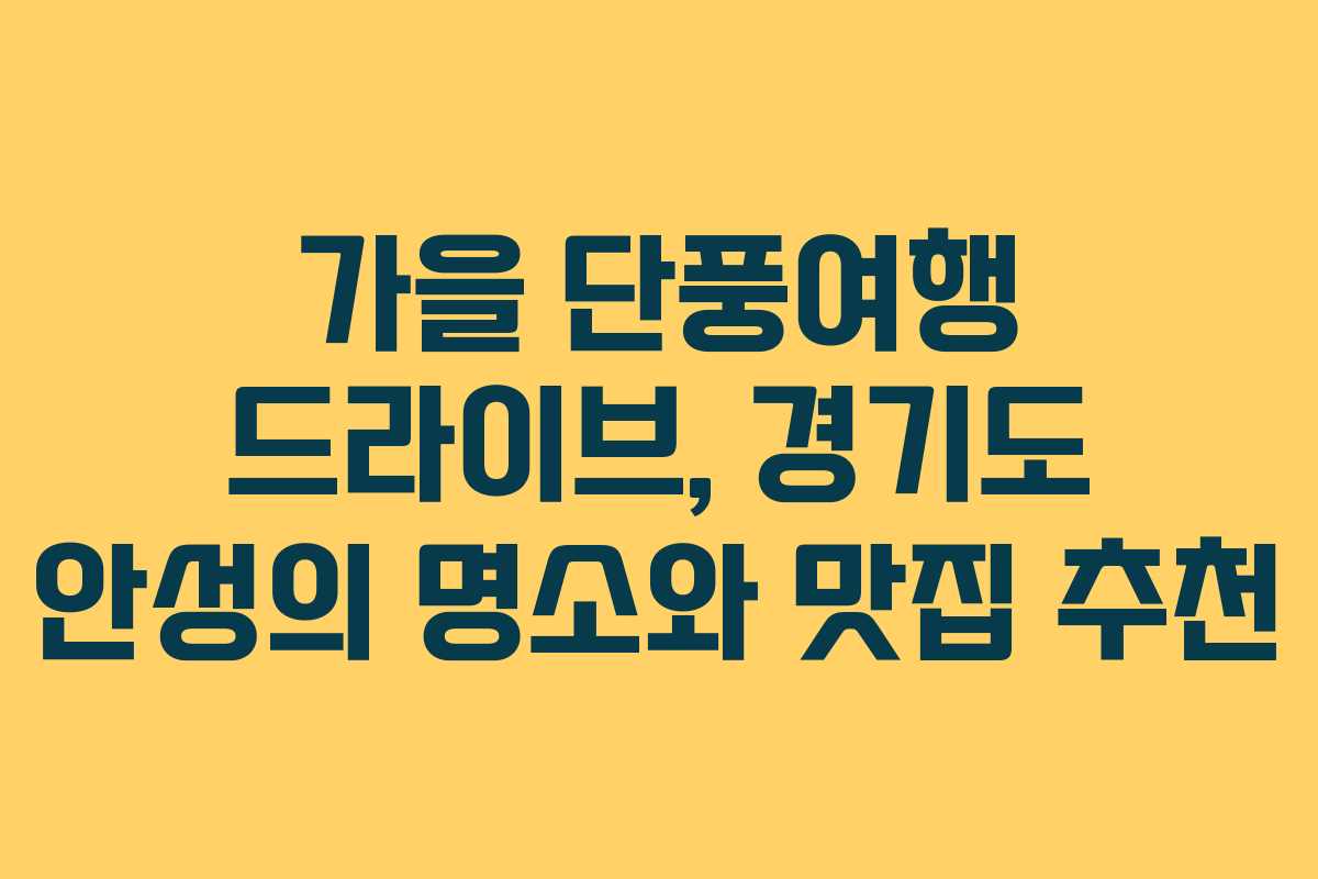 가을은 자연이 변화하는 아름다운 계절로, 특히 단풍이 물드는 시기에 드라이브를 떠나는 것은 특별한 경험을 제공합니다. 경기도 안성은 단풍을 즐기기에 최적의 장소로, 이곳의 명소와 맛집을 소개합니다.