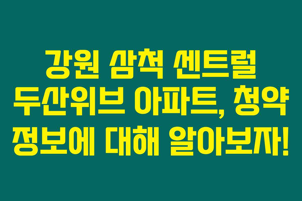 강원 삼척 센트럴 두산위브 아파트, 청약 정보에 대해 알아보자!