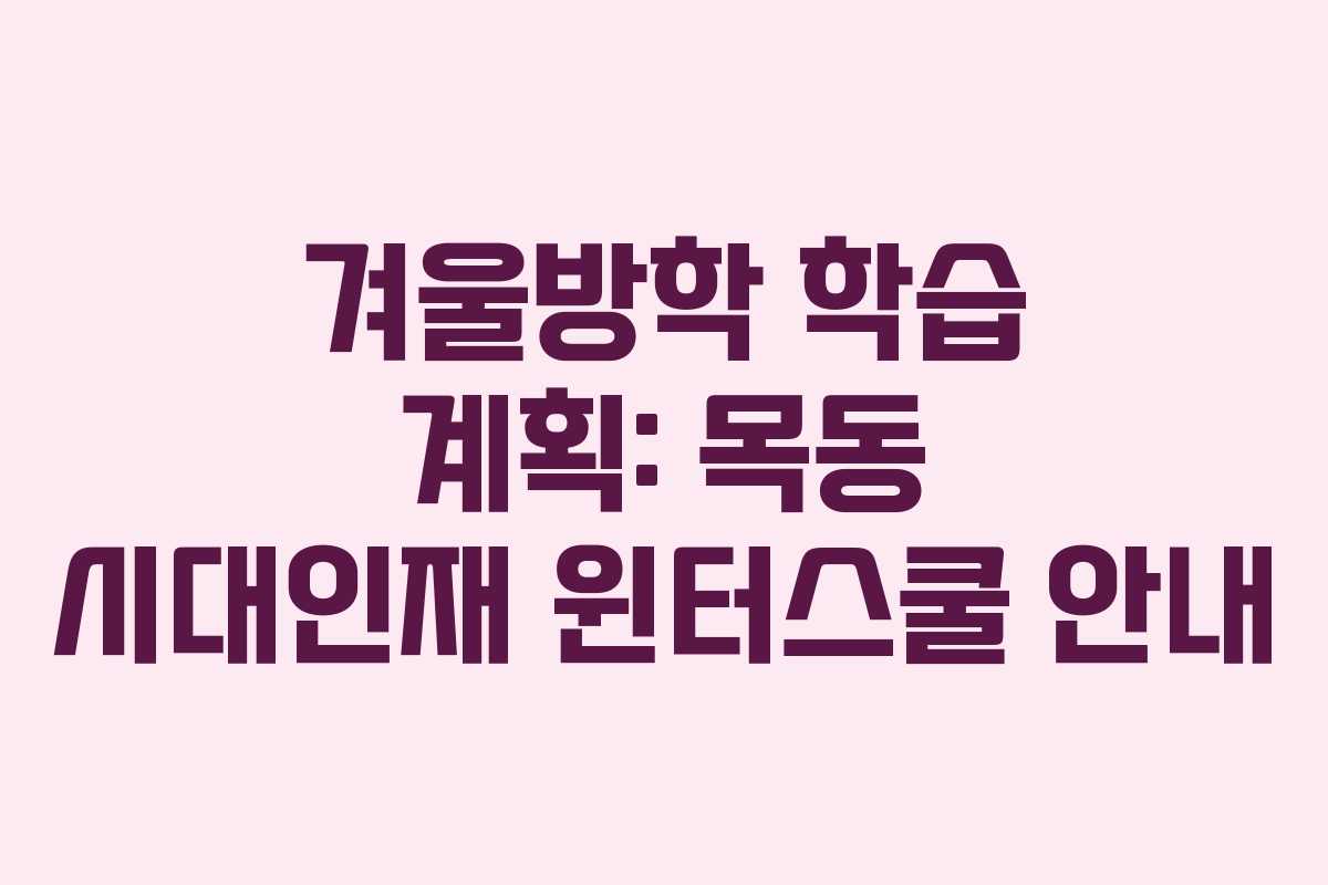 겨울방학 학습 계획: 목동 시대인재 윈터스쿨 안내