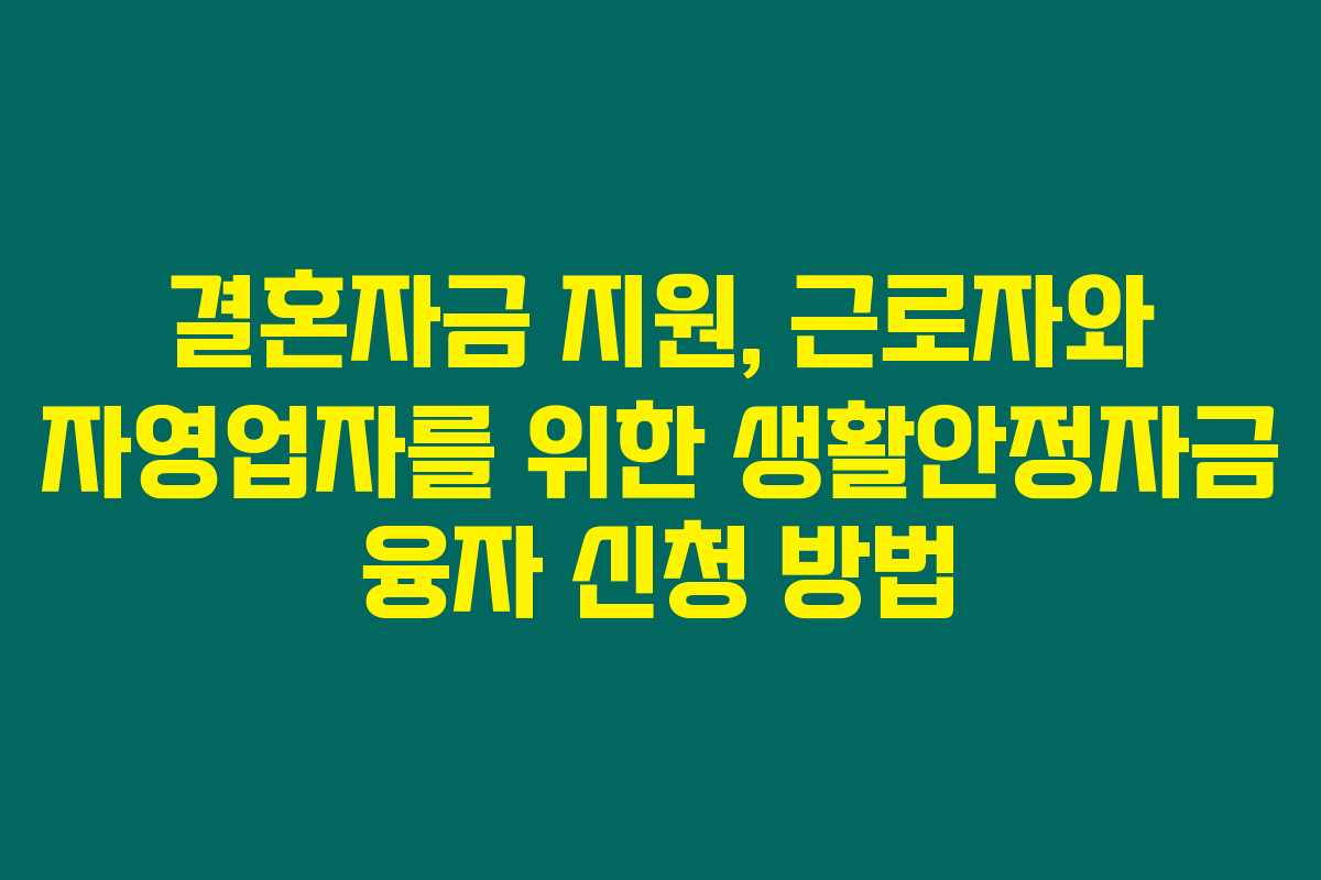 생활안정자금 융자는 결혼을 준비하는 근로자와 자영업자를 위해 정부에서 제공하는 지원 제도입니다. 원하는 조건에 맞는 자금 지원이 가능하니, 결혼자금 때문에 고민하는 여러분께 아주 유용한 정보가 될 것입니다.