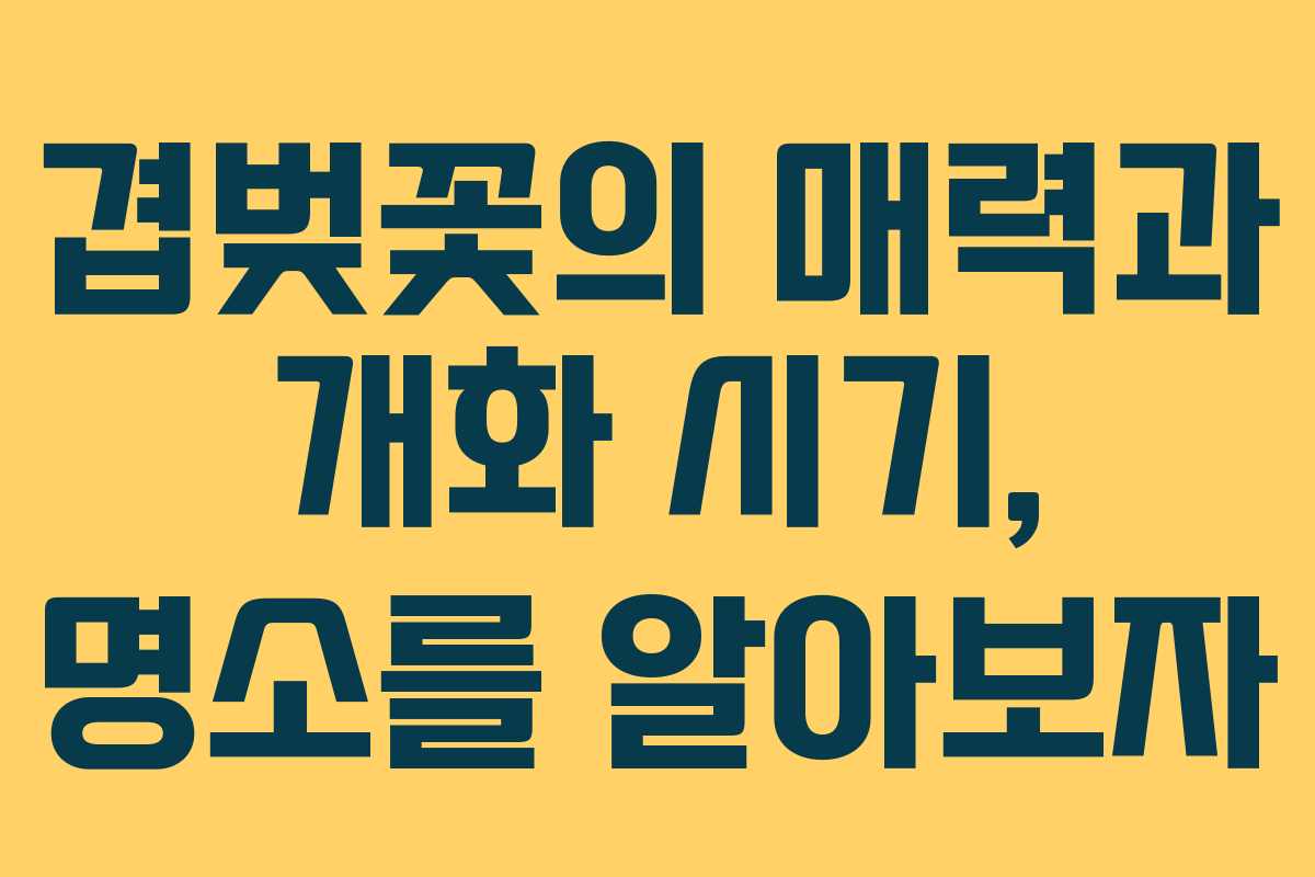 봄이 오면 다양한 꽃들이 만개하며 많은 이들이 자연의 아름다움을 즐깁니다. 그 중에서도 겹벚꽃은 일반 벚꽃이 지고 난 후에도 또 다른 매력을 선사하는 꽃입니다. 겹벚꽃은 일반 벚꽃보다 늦게 피어나며, 겹겹이 쌓인 꽃잎이 화려한 매력을 뽐냅니다. 이번 글에서는 겹벚꽃의 개화 시기와 함께, 이 꽃을 만날 수 있는 아름다운 명소들을 소개하겠습니다.