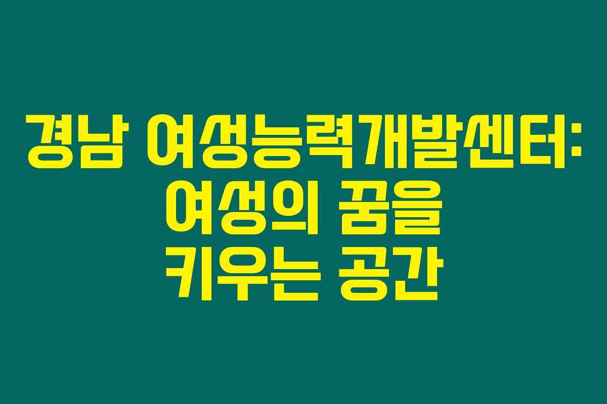 경남 여성능력개발센터는 현대 사회에서 여성의 잠재력을 키우는 데 큰 역할을 하고 있답니다. 여러분도 꼭 한번 경험해보세요!