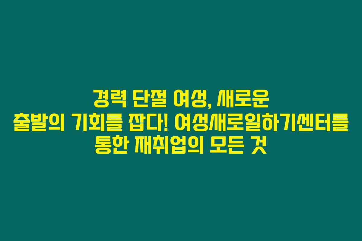 여성 새로 일하기 센터는 경력 단절 여성들에게 맞춤형 지원 서비스를 제공하는 곳이에요. 여기서 여러분이 어떤 혜택을 받을 수 있는지 알아볼게요!
