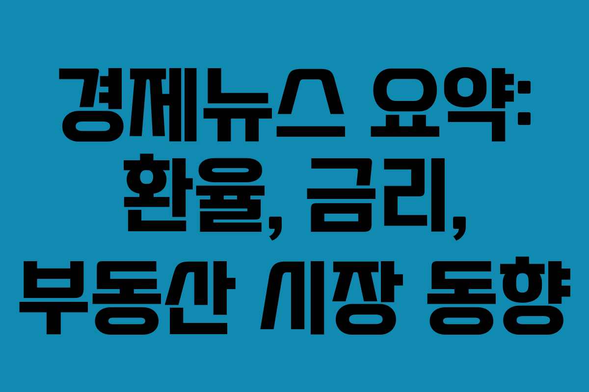 경제뉴스 요약: 환율, 금리, 부동산 시장 동향