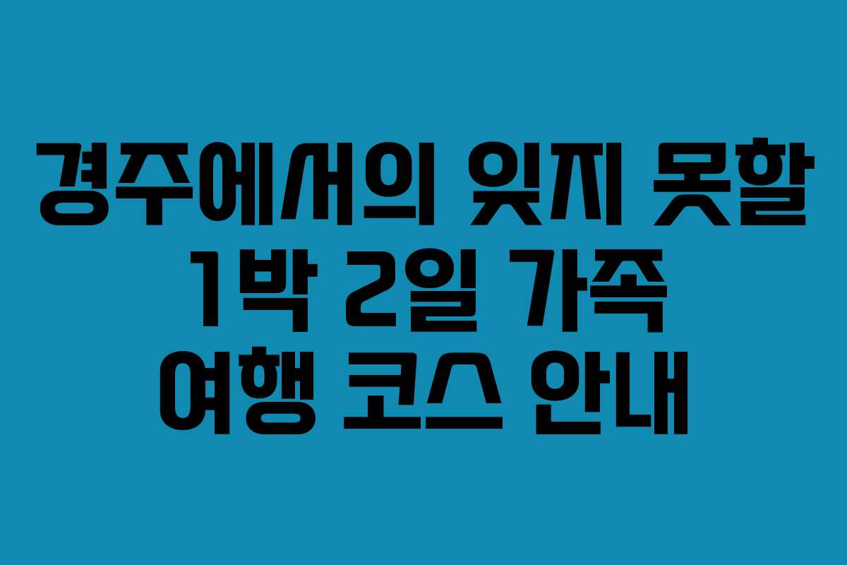 경주에서의 1박 2일 여행은 가족과 함께하는 소중한 시간으로 가득 찰 것입니다. 다양한 명소와 활동을 통해 역사와 자연을 동시에 느낄 수 있는 기회를 놓치지 마세요. 건강하고 행복한 여행 되길 바랍니다.