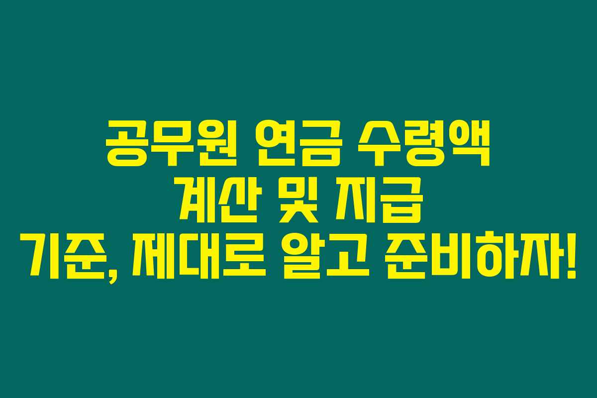 제가 직접 알아본 바로는 공무원 연금은 퇴직 후 경제적 안정을 위한 매우 중요한 제도입니다. 하지만 많은 분들이 그 수령액을 계산하는 방법과 지급 기준에 대해 잘 모르시는 경우가 많습니다. 아래를 읽어보시면 공무원 연금의 지급 기준과 수령액 계산을 통해 더 나은 노후 준비를 할 수 있는 정보를 알아보실 수 있을 거에요.