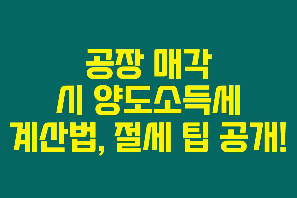 제가 직접 알아본 바로는, 공장을 매각할 때 발생하는 양도소득세는 여러 요소에 의해 다르게 계산됩니다. 이 세금을 줄이기 위한 제대로 된 정보를 알면 큰 도움이 될 것입니다. 아래를 읽어보시면 공장 매각 시 양도소득세의 계산 방법과 절세의 팁까지 알아보실 수 있습니다.
