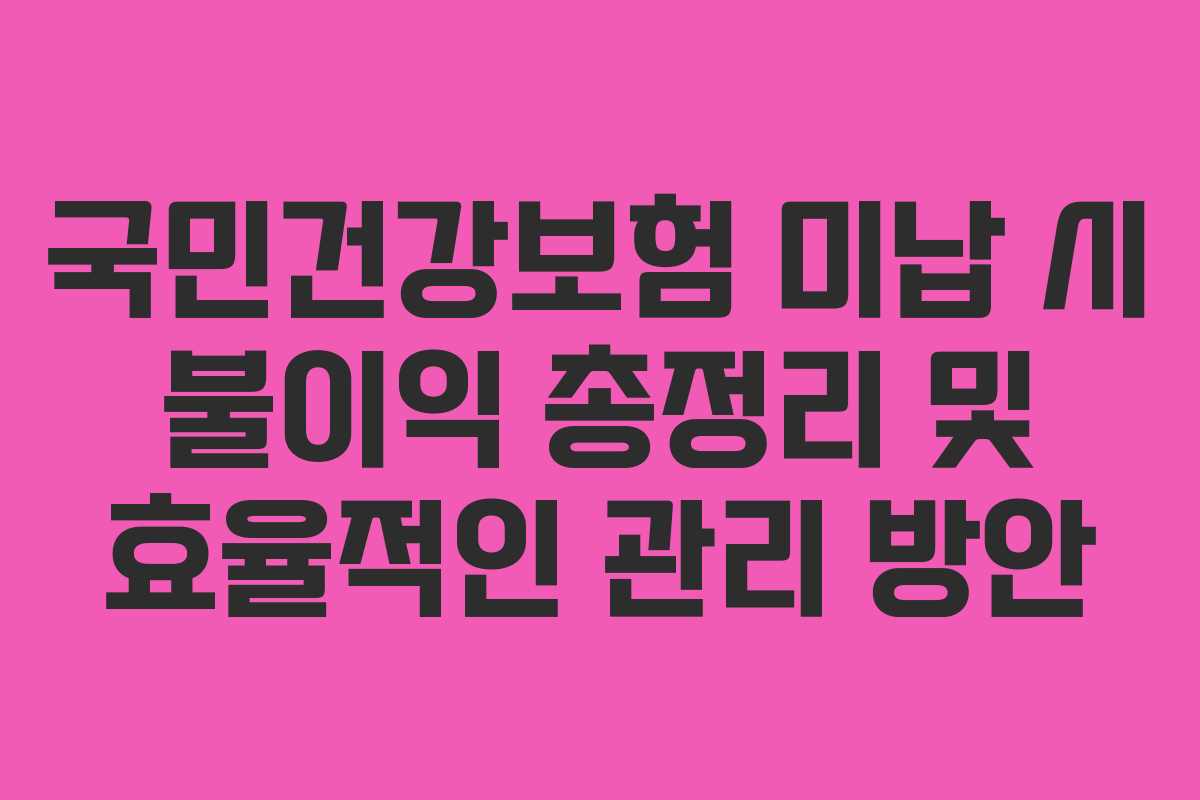 건강보험 미납으로 인해 발생하는 불이익은 다양합니다. 아래 표를 통해 구체적인 내용을 살펴보겠습니다.