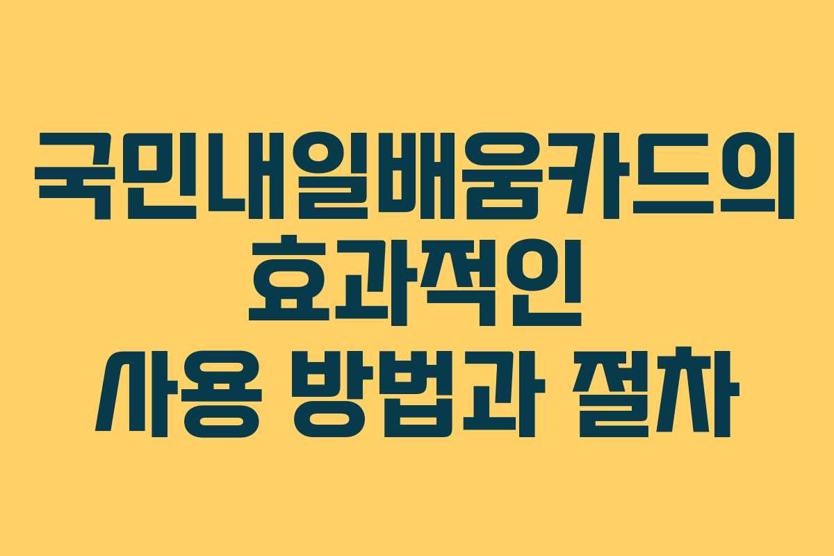 이와 같은 절차를 통해 여러분은 국민내일배움카드를 보다 효과적으로 활용할 수 있을 것입니다. 카드 사용을 통해 직무 능력을 강화하고, 새로운 취업 기회를 창출하는 데 큰 도움이 되기를 바랍니다.