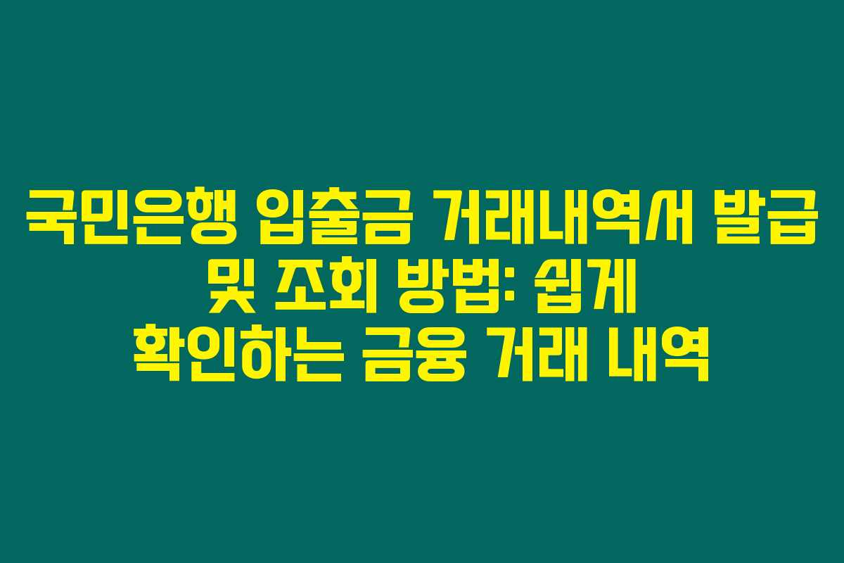 제가 직접 리서치한 바로는, 국민은행의 입출금 거래내역서는 금융 거래를 체계적으로 관리하는 데 필수적인 문서에요. 이 글을 통해 국민은행의 입출금 거래내역서를 발급받고 조회하는 방법에 대해 상세히 알아보겠습니다. 아래를 읽어보시면, 필수적인 금융 정보를 손쉽게 확인하고 관리하는 방법에 대한 유용한 팁을 얻으실 수 있을 거예요.