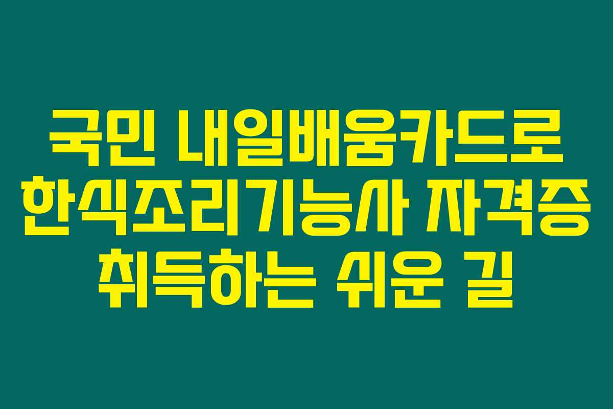 국민 내일배움카드를 통한 한식조리기능사 자격증 취득에 대한 다양한 정보를 제공합니다. 제가 직접 경험해본 결과로는 이 카드를 활용하면 경제적인 부담 없이 자격증 취득이 가능하답니다. 아래를 읽어보시면 자격증 취득의 과정과 실기와 필기 시험 준비 방법, 학원 선택 요령 등을 상세하게 안내해 드릴게요.