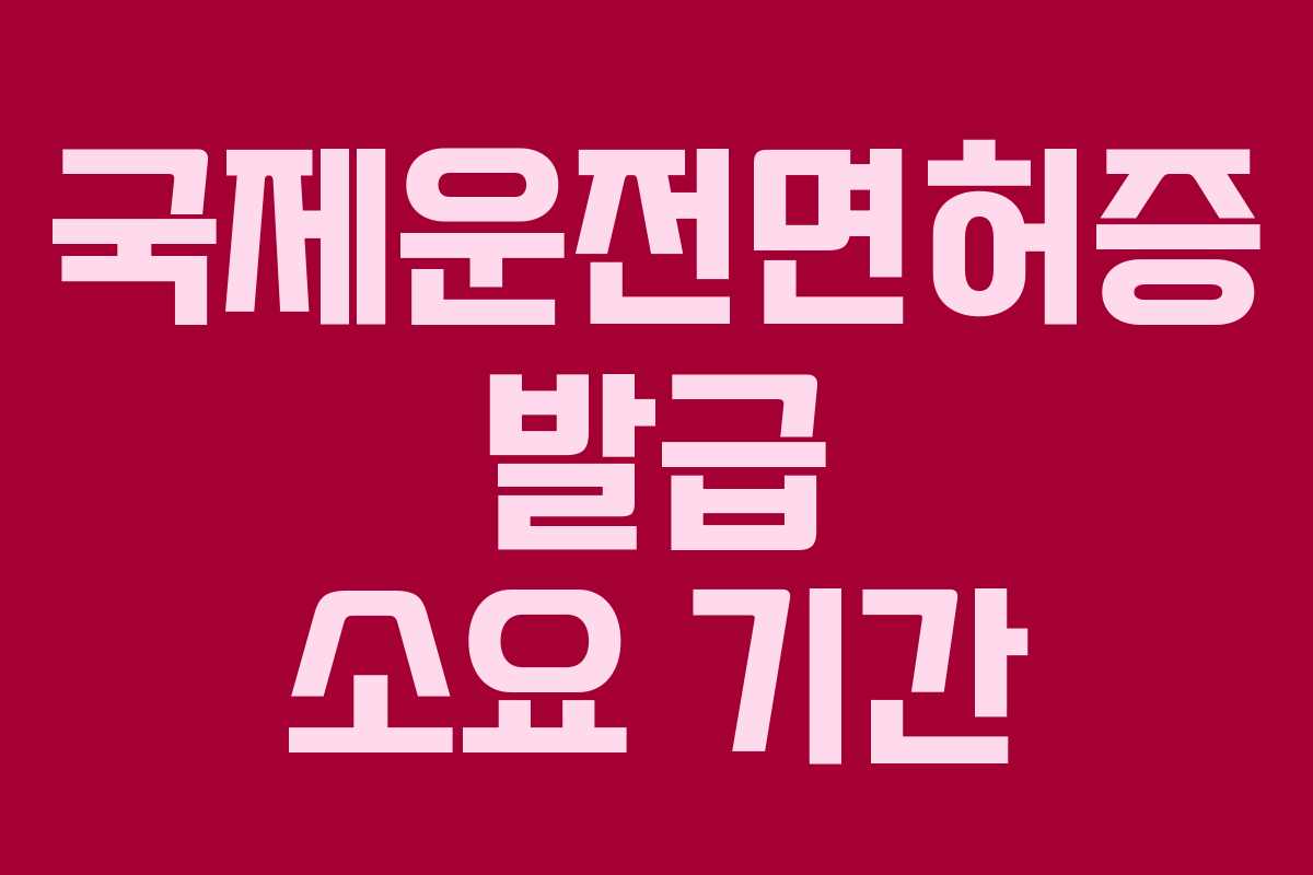 국제운전면허증 발급 소요 기간은 보통 1일에서 1주일 정도 걸리며, 신청한 장소에 따라 다를 수 있습니다.