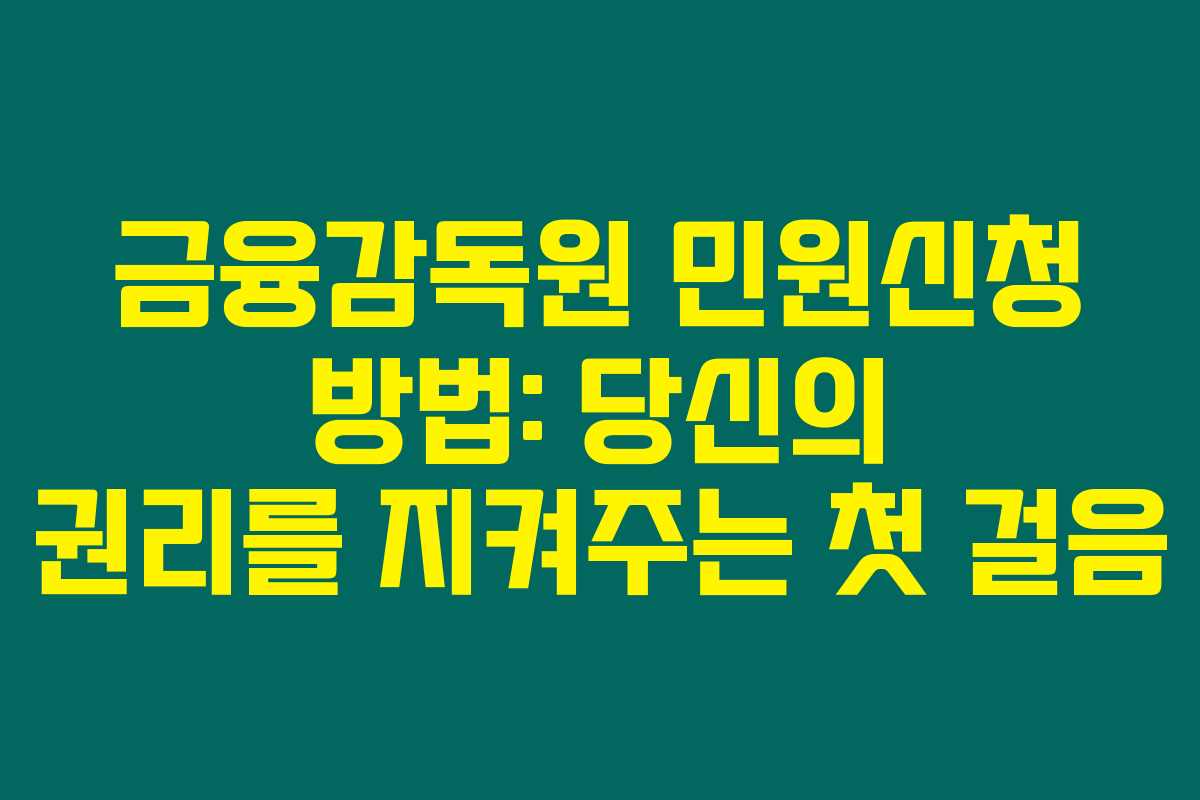 금융감독원 민원신청 방법에 대해 궁금하시다면 주목해 주세요. 금융기관과의 거래에서 불만이나 문제가 생겼다면, 혼자 고민하지 말고 올바른 방법으로 문제를 해결해보세요. 금융감독원은 소비자를 보호하고 금융시장을 신뢰할 수 있도록 돕는 기관이니까요. 자 이제, 아래를 읽어보시면 정확하고 간단한 민원신청 방법을 안내해드릴게요.
