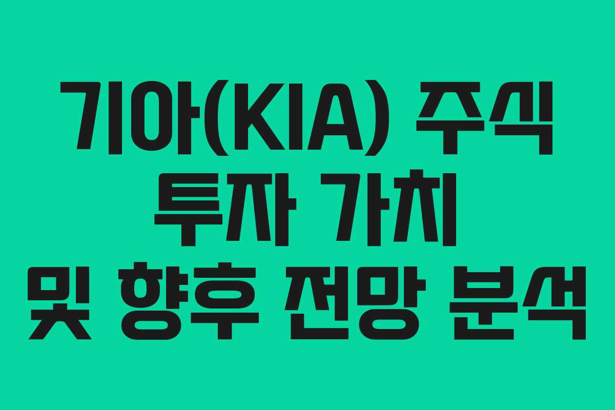 기아(KIA) 주식 투자 가치 및 향후 전망 분석