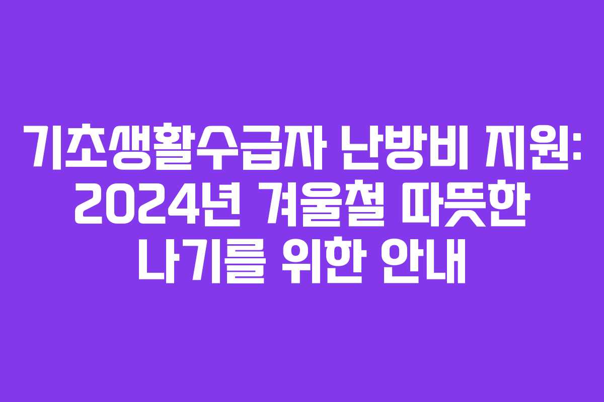 겨울철이 다가오면 난방비 부담이 커지며, 특히 기초생활수급자 가구는 그 부담이 더욱 크게 느껴집니다. 이에 따라 정부는 기초생활수급자를 위한 난방비 지원 제도를 마련하여 이들이 따뜻하고 안전하게 겨울을 나도록 돕고 있습니다. 이번 글에서는 2024년 기준 기초생활수급자 난방비 지원의 핵심 내용과 신청 방법을 자세히 살펴보겠습니다.