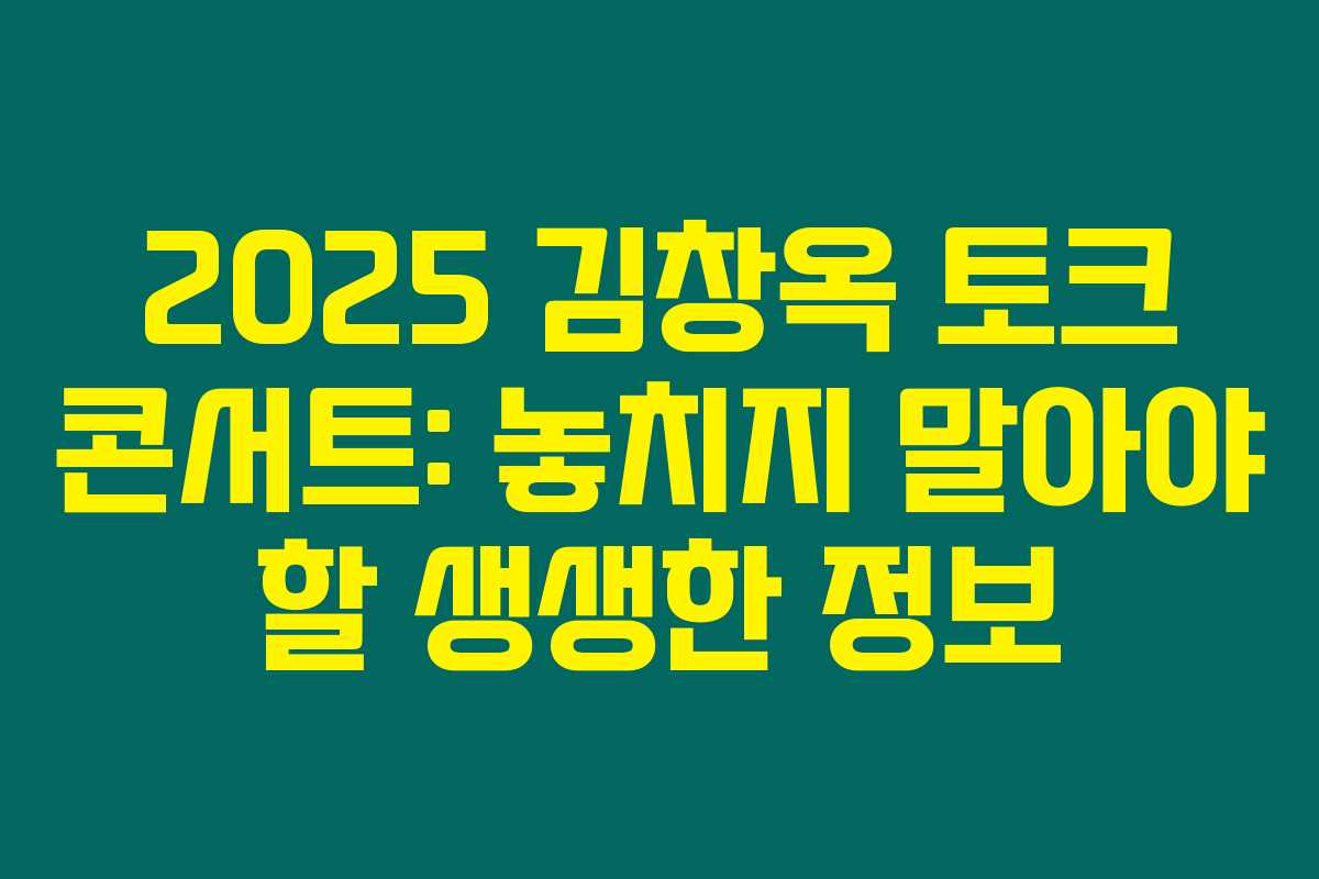 2025 김창옥 토크 콘서트에 대한 모든 정보를 정리해봤어요. 여러분이 이번 콘서트를 통해 즐거운 시간을 보내실 수 있기를 바라요. 여러분의 많은 관심 부탁드릴게요!