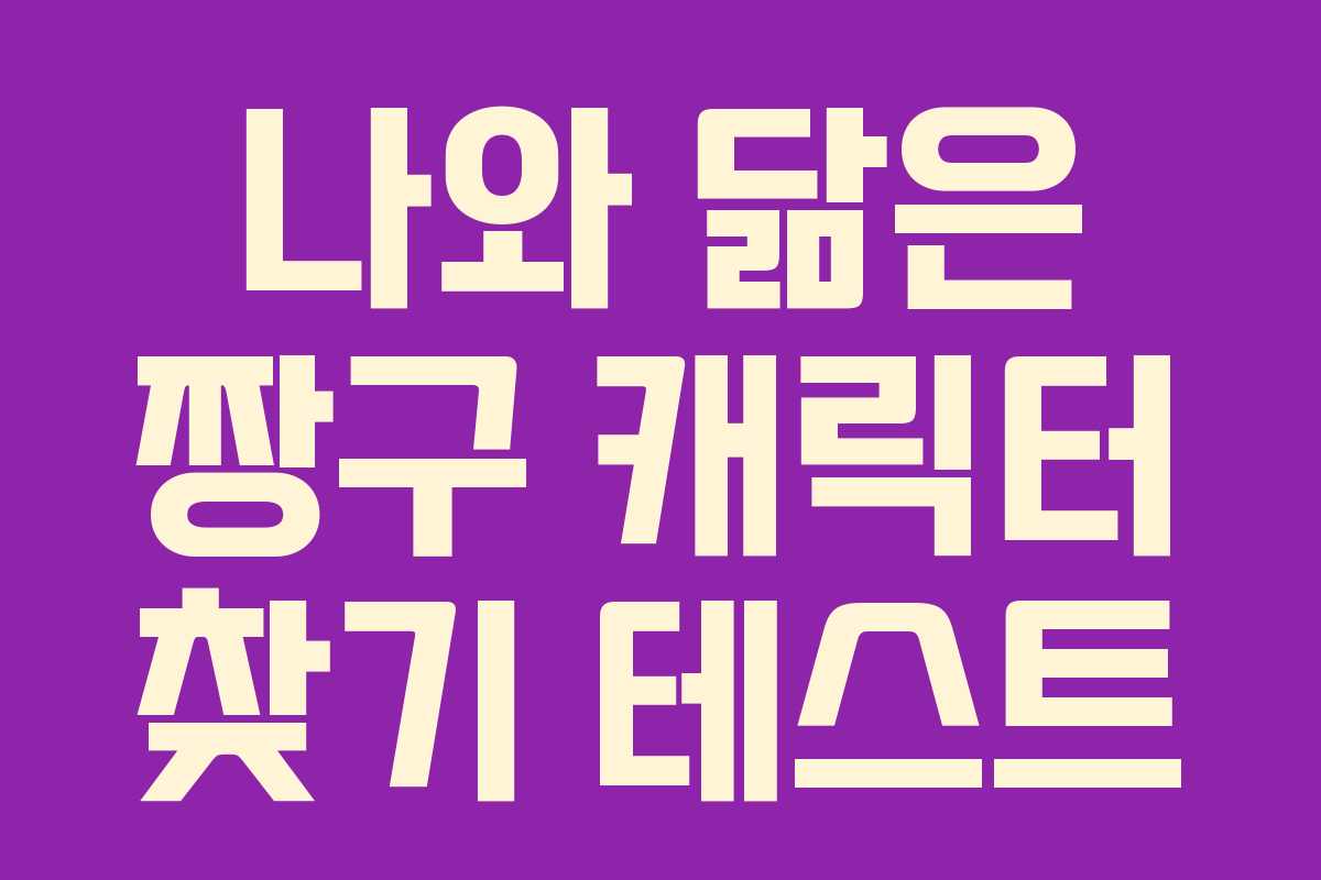 짱구 캐릭터와의 유사성을 통해 자신의 성격을 알아보는 흥미로운 심리 테스트를 소개합니다. 이 테스트는 총 12문제로 구성되어 있으며, 약 1분의 시간 안에 완료할 수 있습니다. 자신의 성격과 닮은 짱구 캐릭터를 찾아보세요.