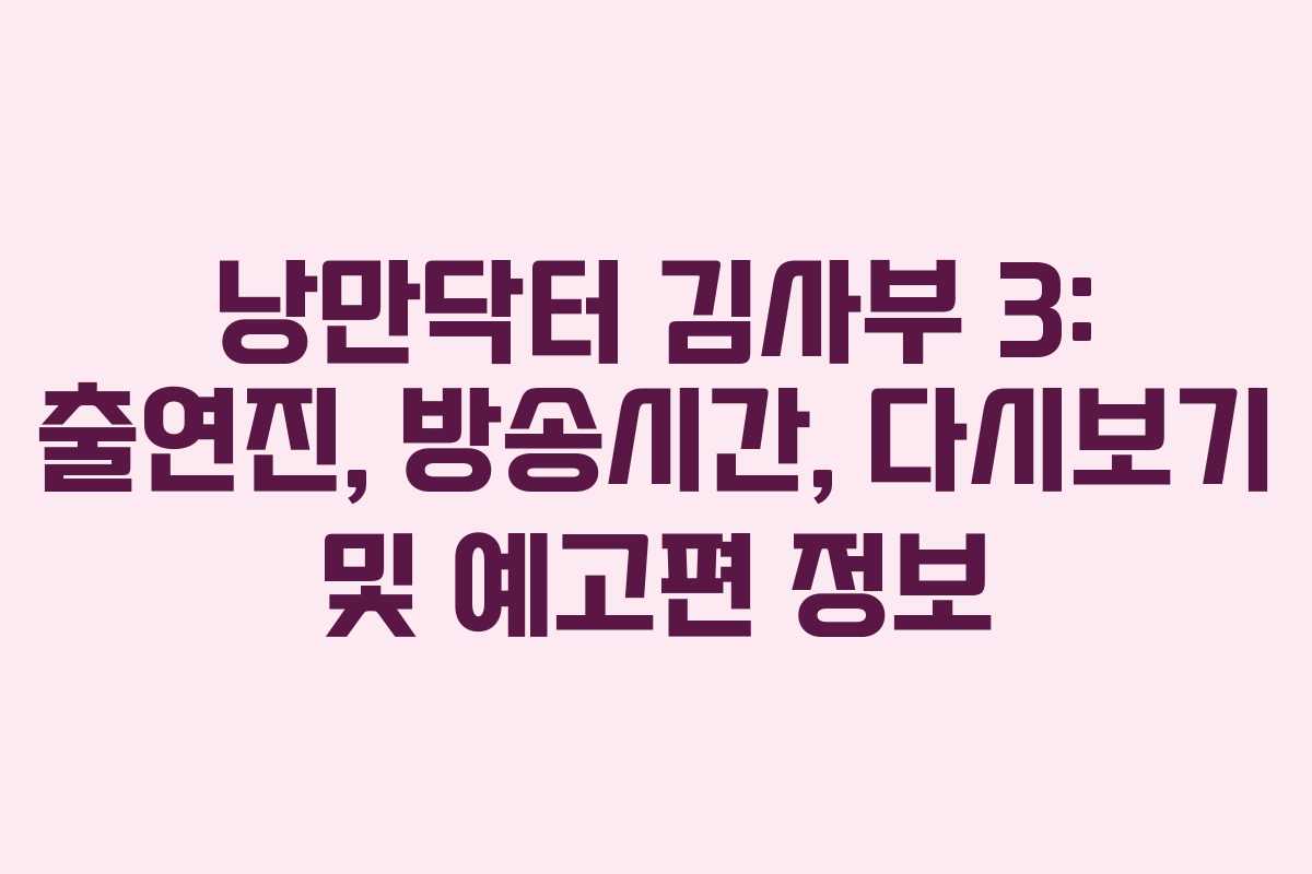 낭만닥터 김사부 3는 SBS 채널을 통해 본방송을 시청할 수 있으며, 방송 종료 후에는 OTT 서비스를 통해 다시보기 기능을 이용할 수 있습니다.
