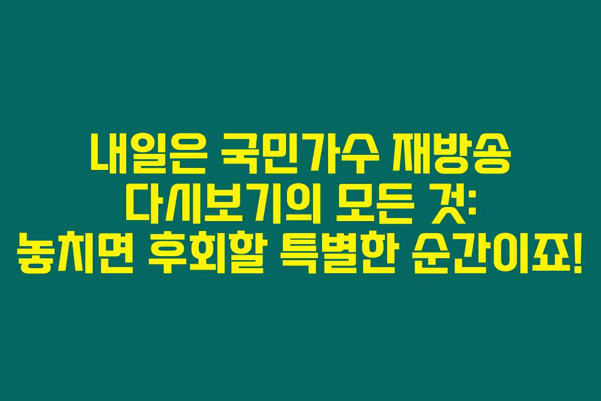 재방송을 놓쳤더라도 걱정하지 마세요! 내일은 국민가수 재방송을 통해 언제든지 방송을 다시 시청할 수 있어요.