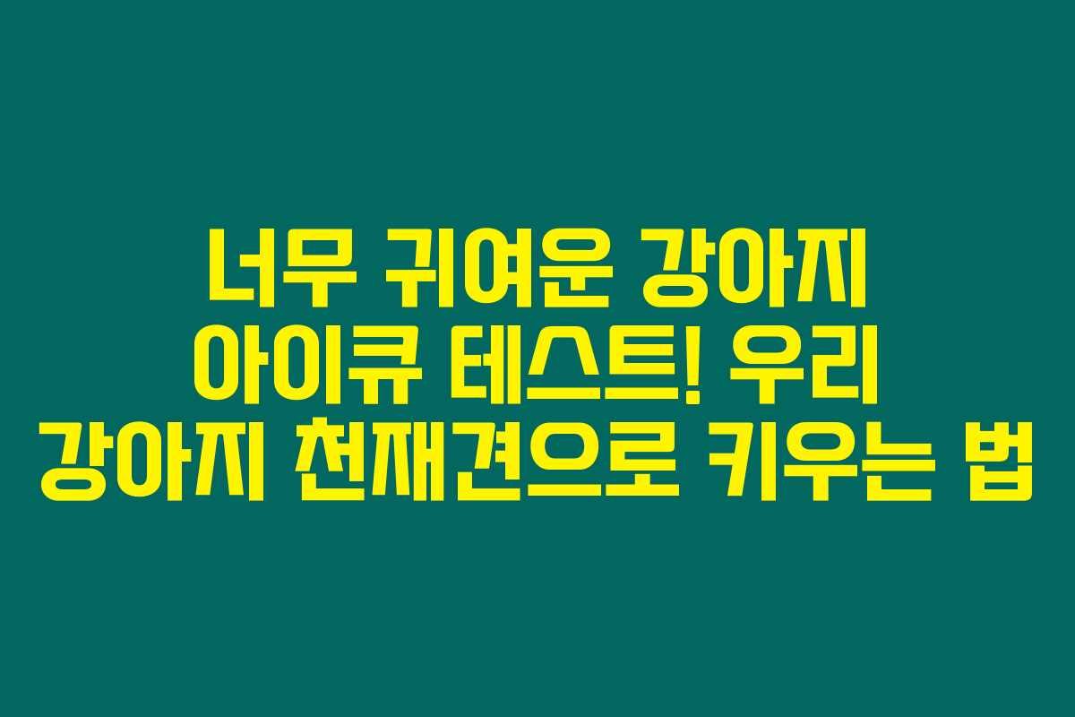 강아지 아이큐 테스트는 우리 강아지의 인지 능력을 알아보는 즐거운 방법이에요. 사랑스러운 반려견을 통해 이해하고 소통하는 시간을 가지며, 더 깊은 유대감을 만들어보세요. 여러분의 강아지가 천재견으로 성장할 수 있도록 응원하겠습니다!