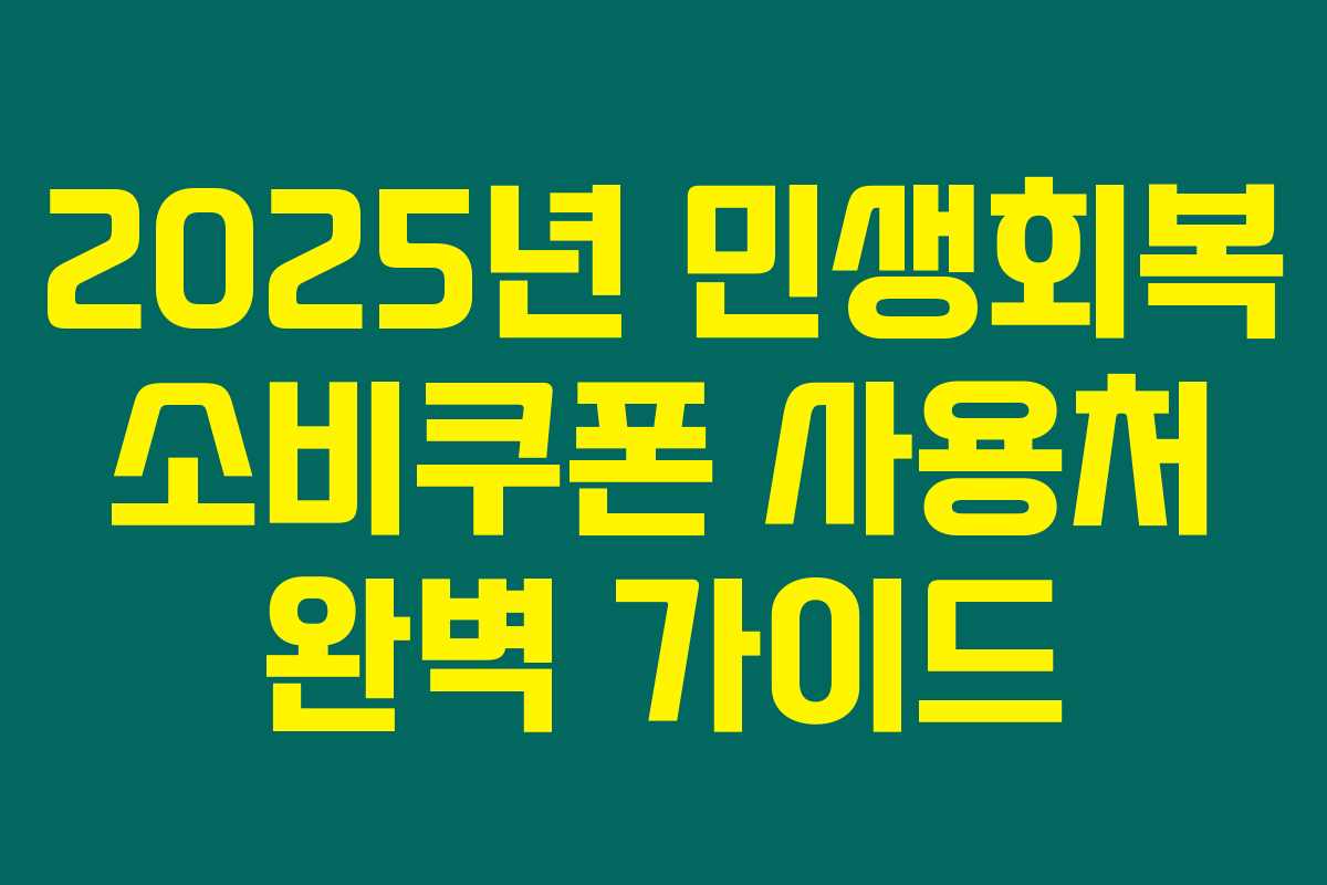2025년 민생회복 소비쿠폰 사용처 완벽 가이드