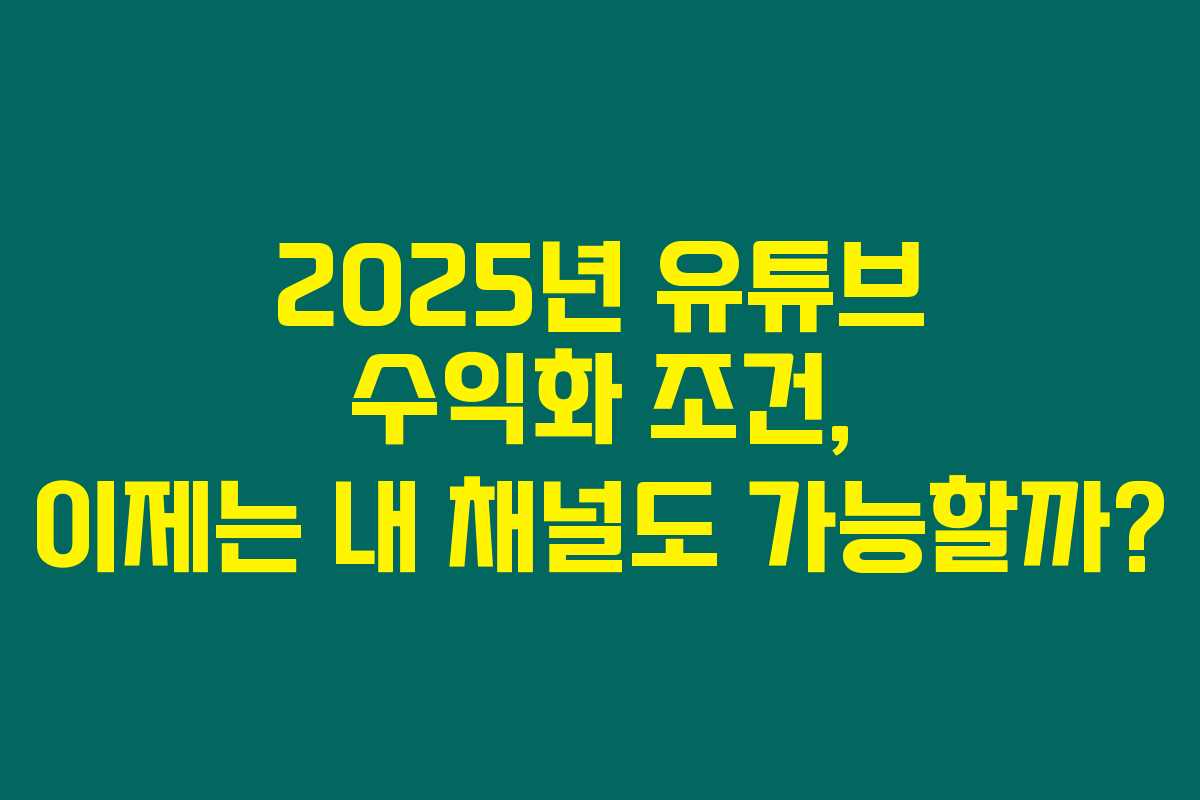 유튜브는 단순한 동영상 플랫폼을 넘어서 많은 이들에게 수익 창출의 기회를 제공하는 공간입니다. 2025년에는 유튜브 수익화 조건이 변경되었는데요, 이러한 변화들을 이해하고 활용하는 것이 중요합니다. 아래를 읽어보시면 2025년의 유튜브 수익화 조건과 그에 대한 실전 팁을 확인할 수 있습니다.