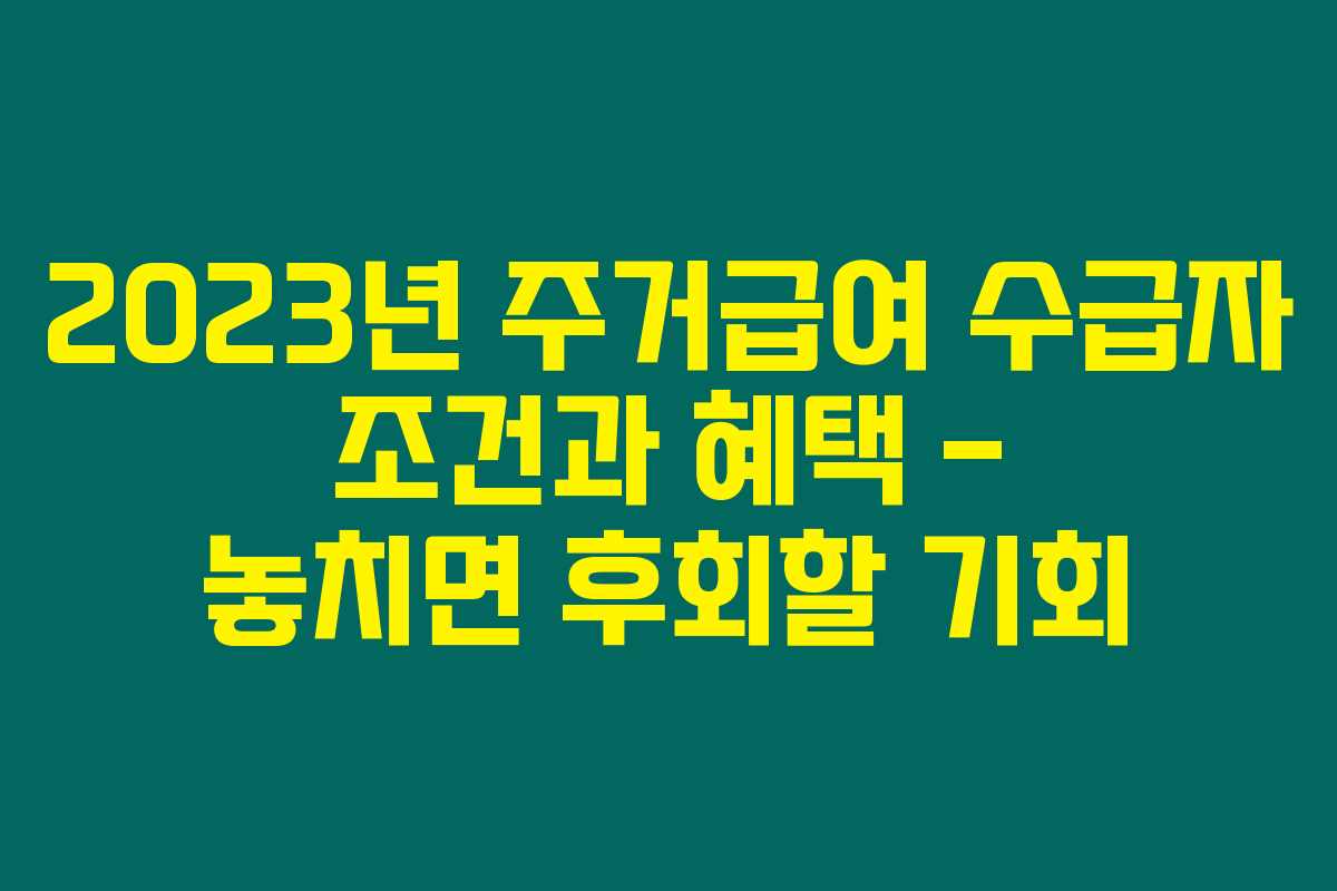 주거급여 수급자가 되기 위한 조건을 알아보겠습니다. 제가 직접 체크해본 바로는, 주거급여를 신청하기 위해서는 몇 가지 조건을 충족해야 합니다.