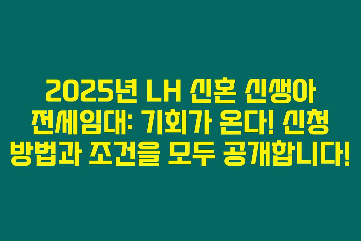 2025년 LH 신혼 신생아 전세임대: 기회가 온다! 신청 방법과 조건을 모두 공개합니다!