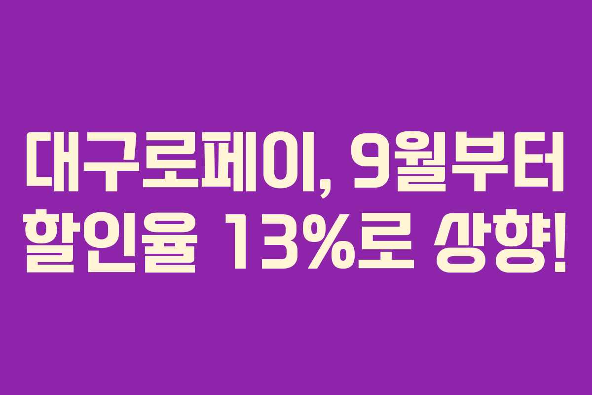 2025년 9월 1일부터 대구 지역사랑상품권인 ‘대구로페이’의 할인율이 기존 7%에서 13%로 대폭 인상됩니다. 이는 추석 명절과 소비 활성화를 위해 시행되는 정책으로, 정부의 추가경정예산에 따라 지역 소상공인과 시민들이 더욱 혜택을 누릴 수 있도록 마련된 것입니다.