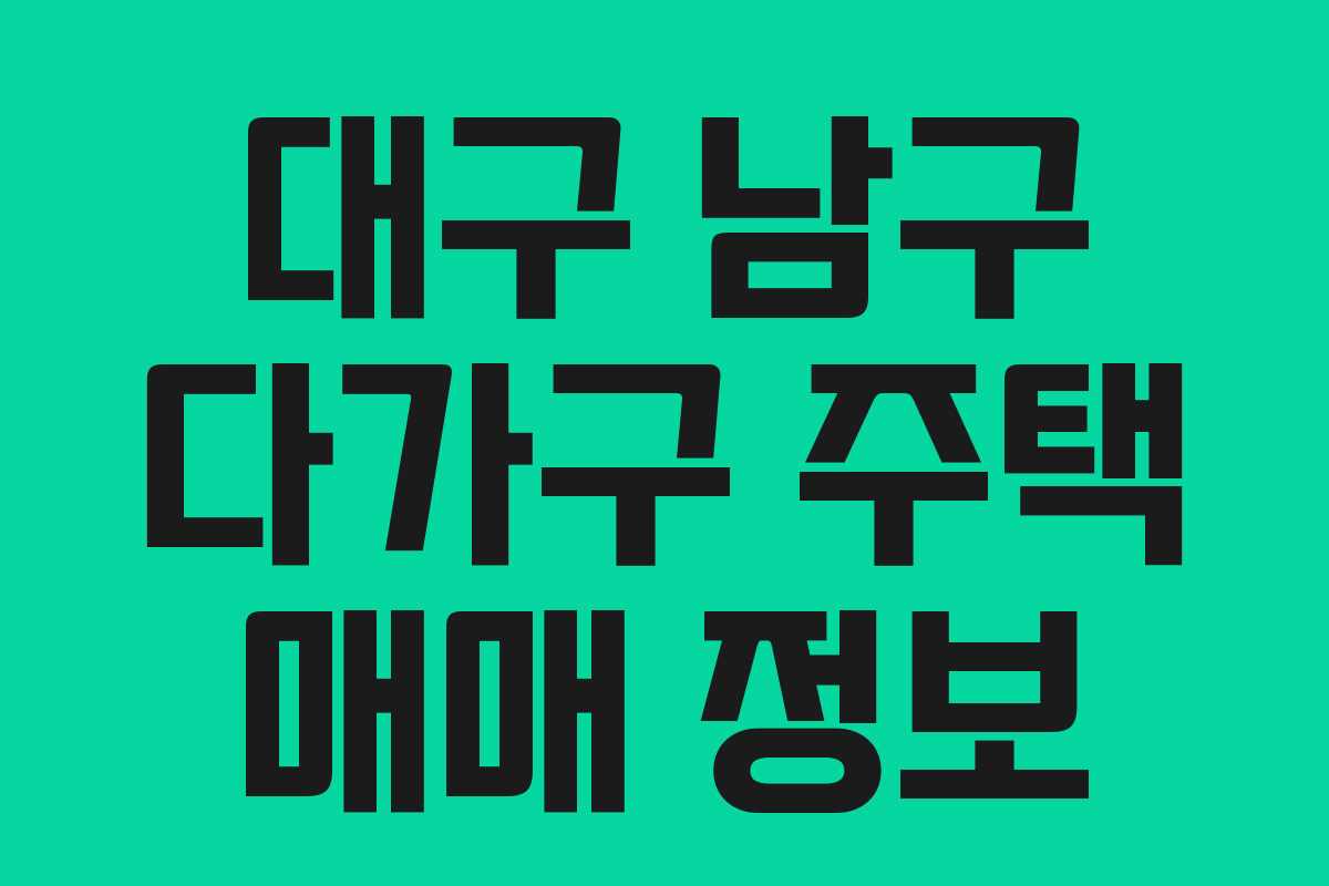 대구 남구에서 매물로 나와 있는 다가구 주택에 대한 정보를 소개합니다. 이 지역은 최근 신축 건물들이 늘어나고 있으며, 저렴한 원룸 매물도 많이 있는 곳입니다.