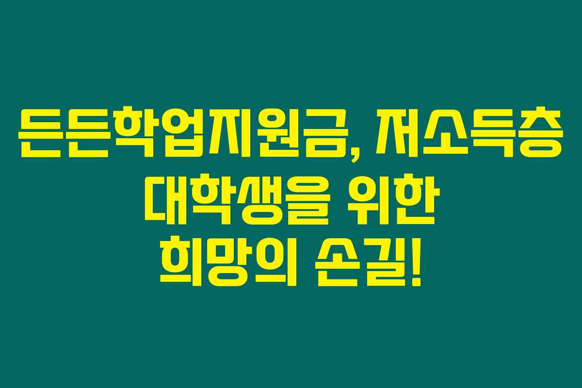 든든학업지원금은 경제적으로 어려운 대학생들이 학업을 중단하지 않고 계속 이어 나갈 수 있도록 돕기 위한 것입니다. 이 프로그램은 기초생활수급자, 차상위 계층 및 저소득층 학생들을 대상으로 하며, 신청자에게는 최대 200만 원의 생활비가 지원됩니다. 제가 직접 리서치해 본 결과, 이 지원금으로 인해 많은 학생들이 학업을 유지할 수 있었던 사례를 보았습니다.