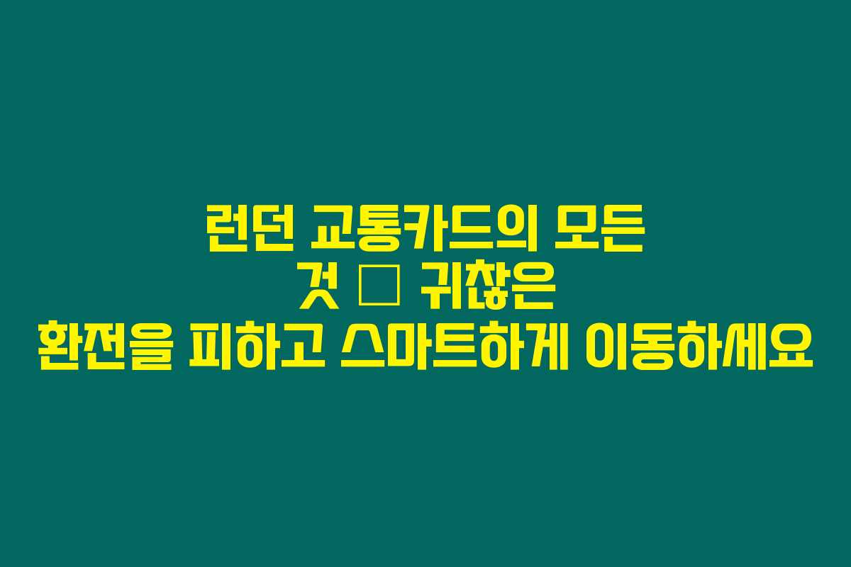 런던에서 대중교통을 이용하려면 반드시 교통카드를 알고 활용해야 해요. 현명하게 선택해서 불필요한 환전을 피하고 스마트하게 여행하세요. 런던의 매력을 마음껏 즐기기 위해 최적의 교통카드를 선택하세요. 여행이 더욱 풍성해질 거랍니다.