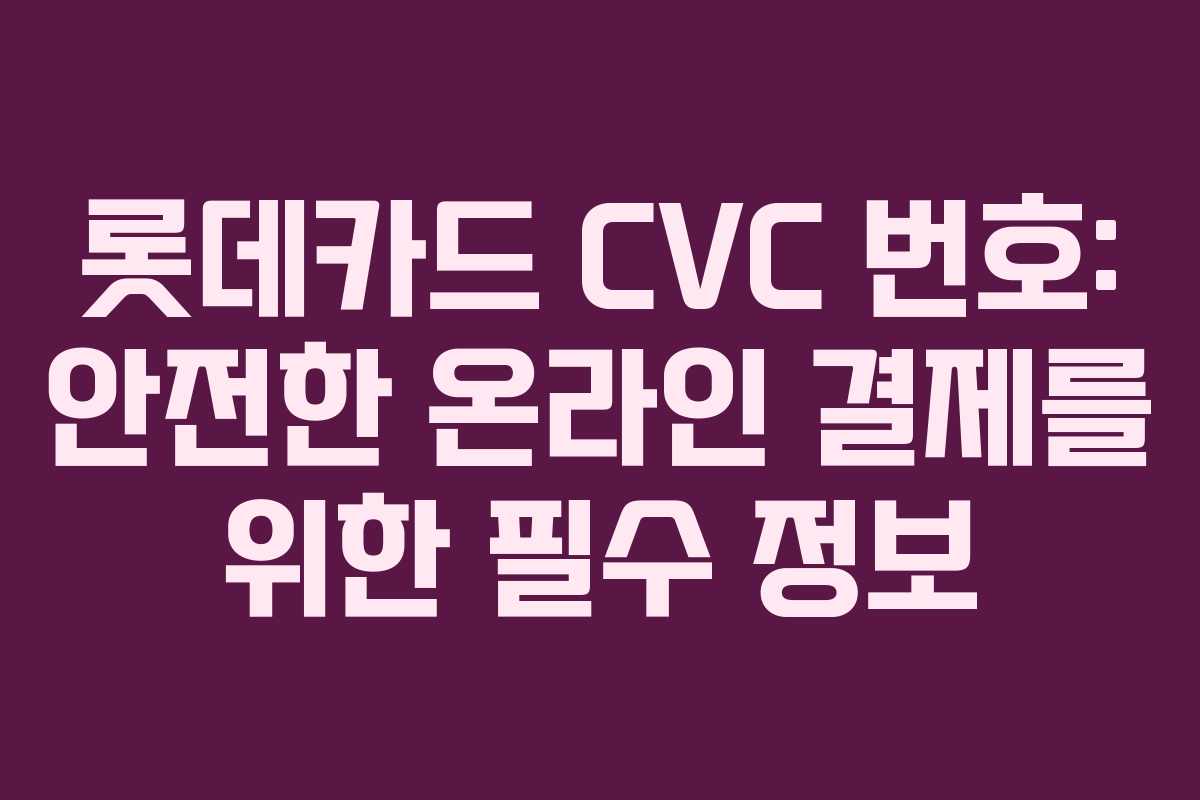 롯데카드 CVC 번호: 안전한 온라인 결제를 위한 필수 정보