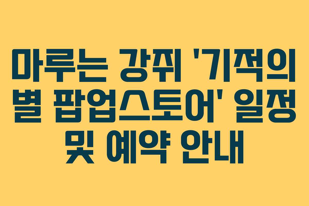 마루는 강쥐의 따뜻한 이야기를 기억하는 팬들에게 기쁜 소식을 전합니다. 특별한 팝업스토어 ‘기적의 별’이 열리며, 다양한 굿즈와 체험이 준비되어 있습니다. 이번 팝업스토어에 대한 자세한 일정과 예약 방법을 안내드리겠습니다.