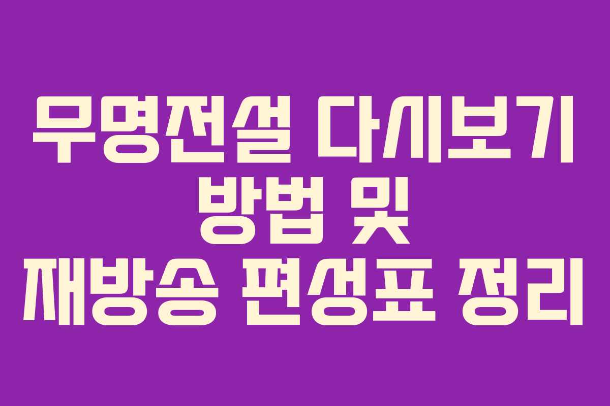 무명전설 다시보기는 원하는 회차를 놓친 시청자들에게 중요한 정보입니다. 이를 제대로 활용하기 위해서는 공식 경로를 통해 쉽고 빠르게 접근하는 것이 핵심입니다. 재방송 편성표와 함께 이 과정을 정리해 보았습니다.