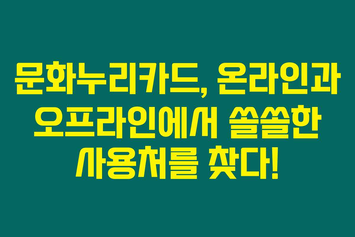 제가 알아본 바로는, 문화누리카드는 우리 일상에서 다양한 문화생활을 좀 더 쉽게 누릴 수 있도록 도와주는 아주 유용한 카드입니다. 이번 글에서는 문화누리카드의 온라인 및 오프라인 사용처와 가맹점을 확인할 수 있는 방법을 생생하게 설명해드리겠습니다. 아래를 읽어보시면 문화누리카드를 보다 효율적으로 활용하는 데 큰 도움이 될 거에요!
