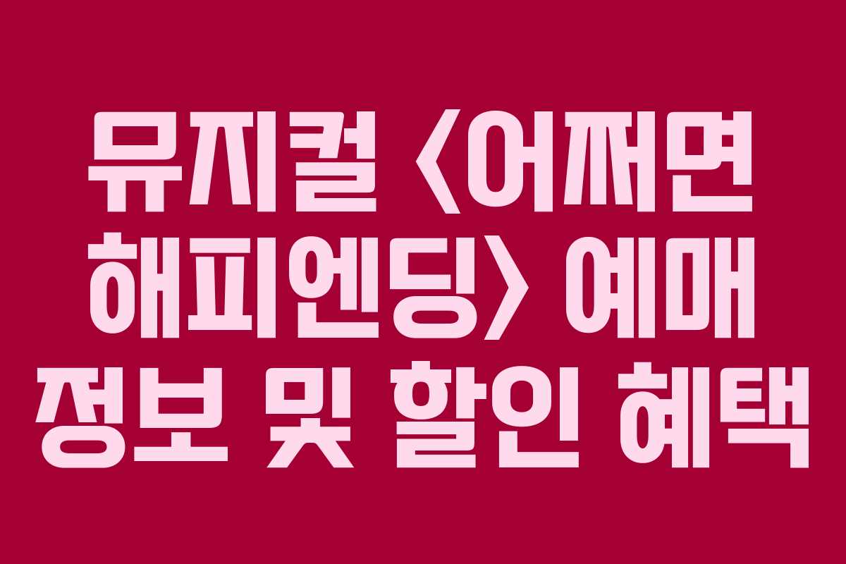 뮤지컬 <어쩌면 해피엔딩>이 2024년 6월 18일부터 9월 8일까지 예스24스테이지 1관에서 공연됩니다. 이번 시즌은 많은 관객들이 기대하는 작품으로, 다양한 할인 혜택도 마련되어 있습니다.