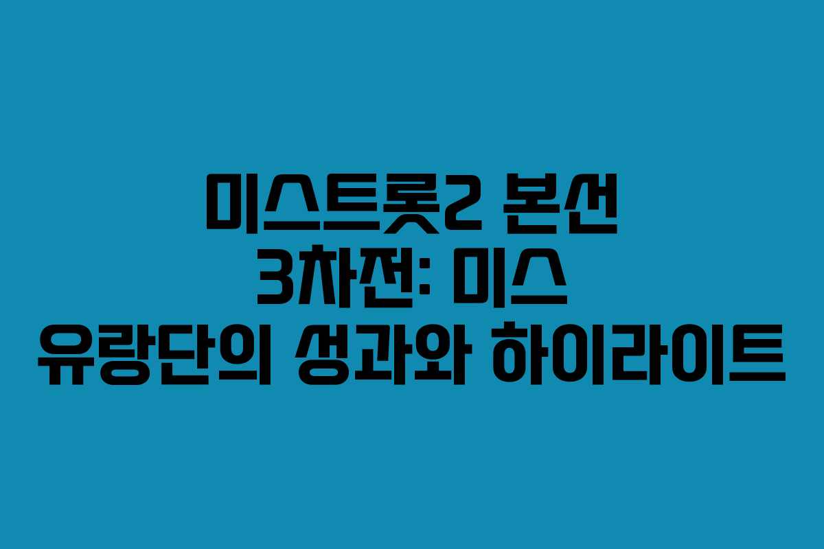 2021년 1월 21일 방송된 ‘미스트롯2’의 6회에서는 본선 3차전의 시작과 함께 다양한 팀의 멋진 무대가 펼쳐졌습니다. 특히 미스 유랑단의 팀 미션이 큰 화제를 모았는데요, 그들의 공연은 시청자들에게 깊은 인상을 남겼습니다.
