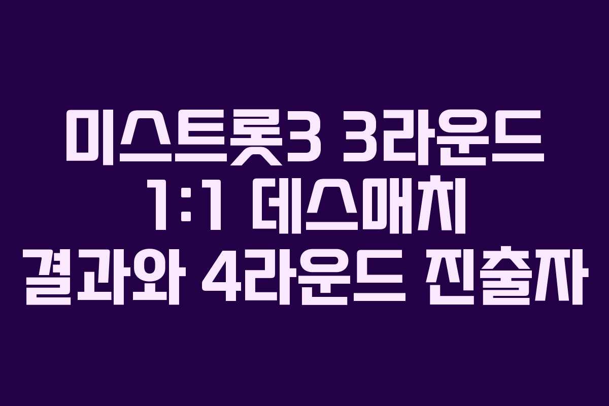 25일 방송된 TV조선 <미스트롯 3> 6회에서는 30명의 참가자들이 1:1 데스매치를 통해 무대에서의 실력을 겨루었습니다. 이번 3라운드는 긴장감 넘치는 대결로 가득 차 있었으며, 결승전을 미리 보는 듯한 흥미진진한 순간들이 연출되었습니다. 본 포스트에서는 3라운드의 결과와 함께 4라운드 진출자 및 탈락 후보를 정리해보겠습니다.
