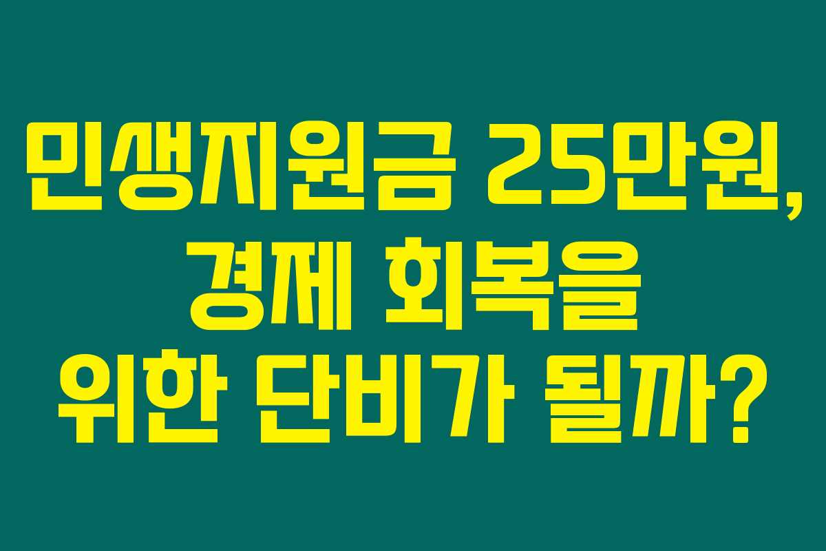민생지원금 25만원, 경제 회복을 위한 단비가 될까?