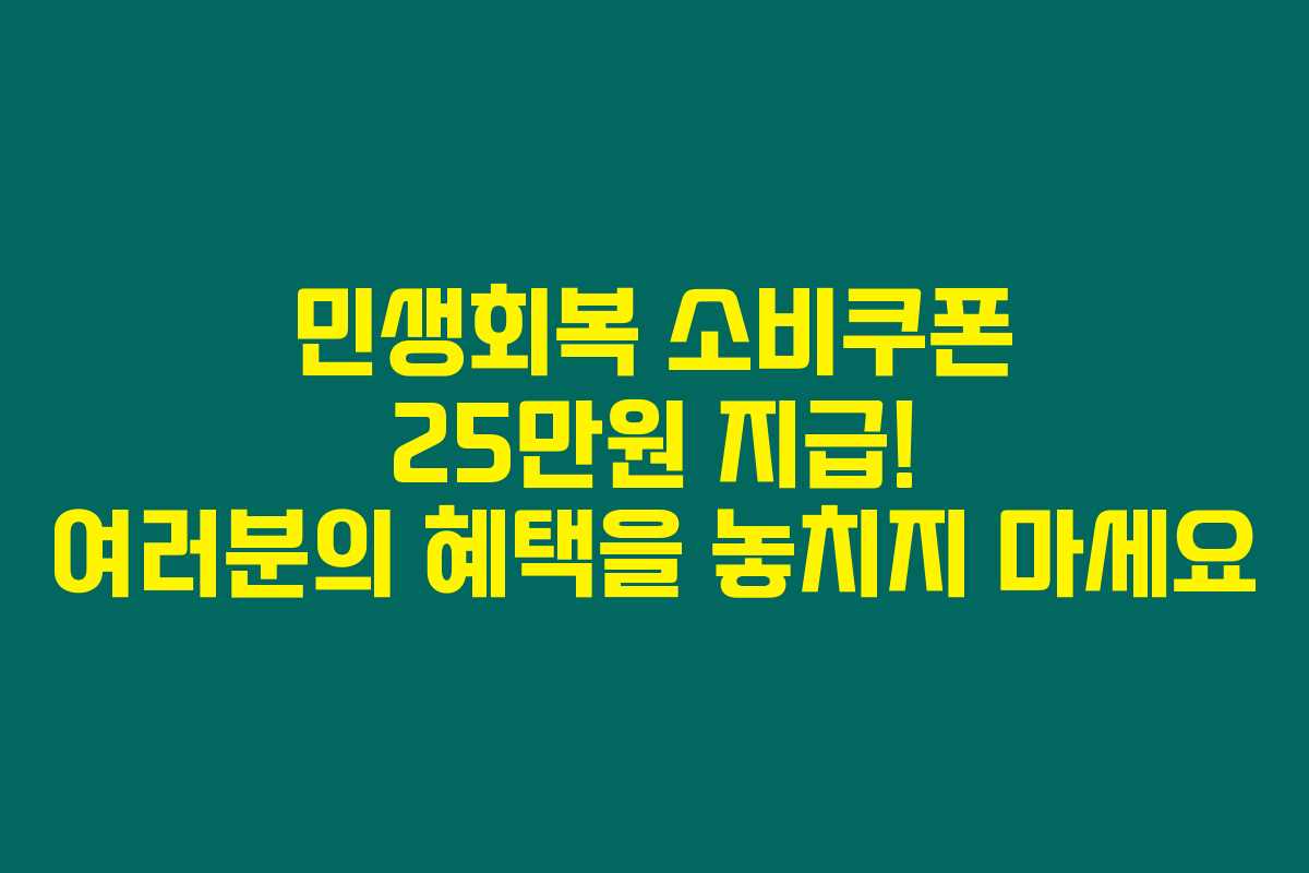 민생회복 소비쿠폰 25만원 지급! 여러분의 혜택을 놓치지 마세요