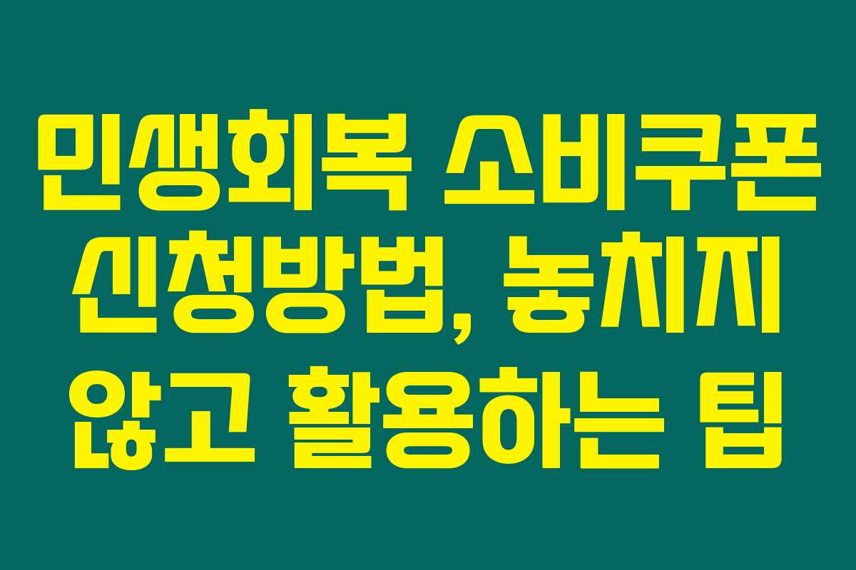 민생회복 소비쿠폰 신청방법, 놓치지 않고 활용하는 팁