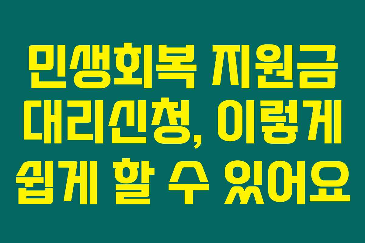 정부에서는 경제적 어려움에 처한 국민들을 위해 민생회복 지원금을 마련했는데요. 대리신청도 가능한 점을 잊지 말고, 필요한 서류만 잘 준비하면 문제없이 진행할 수 있답니다. 자세한 내용을 알아볼게요!