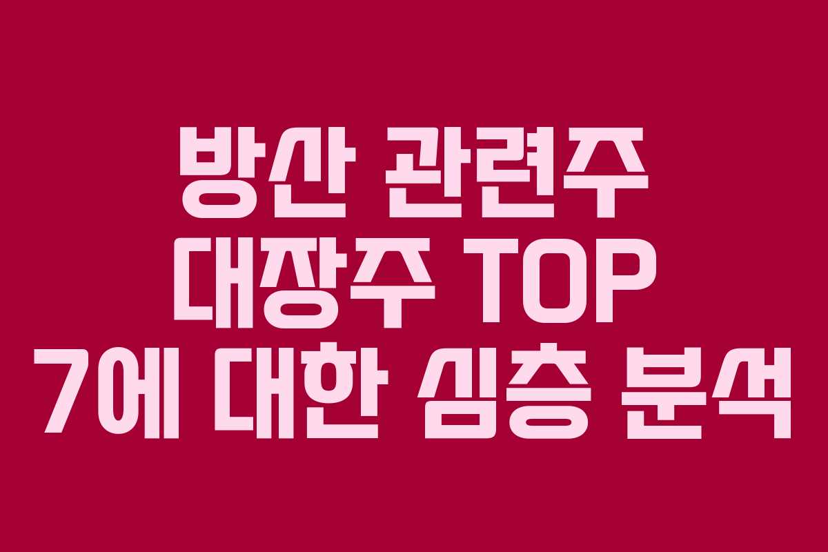 방산 관련주 대장주 TOP 7에 대한 심층 분석