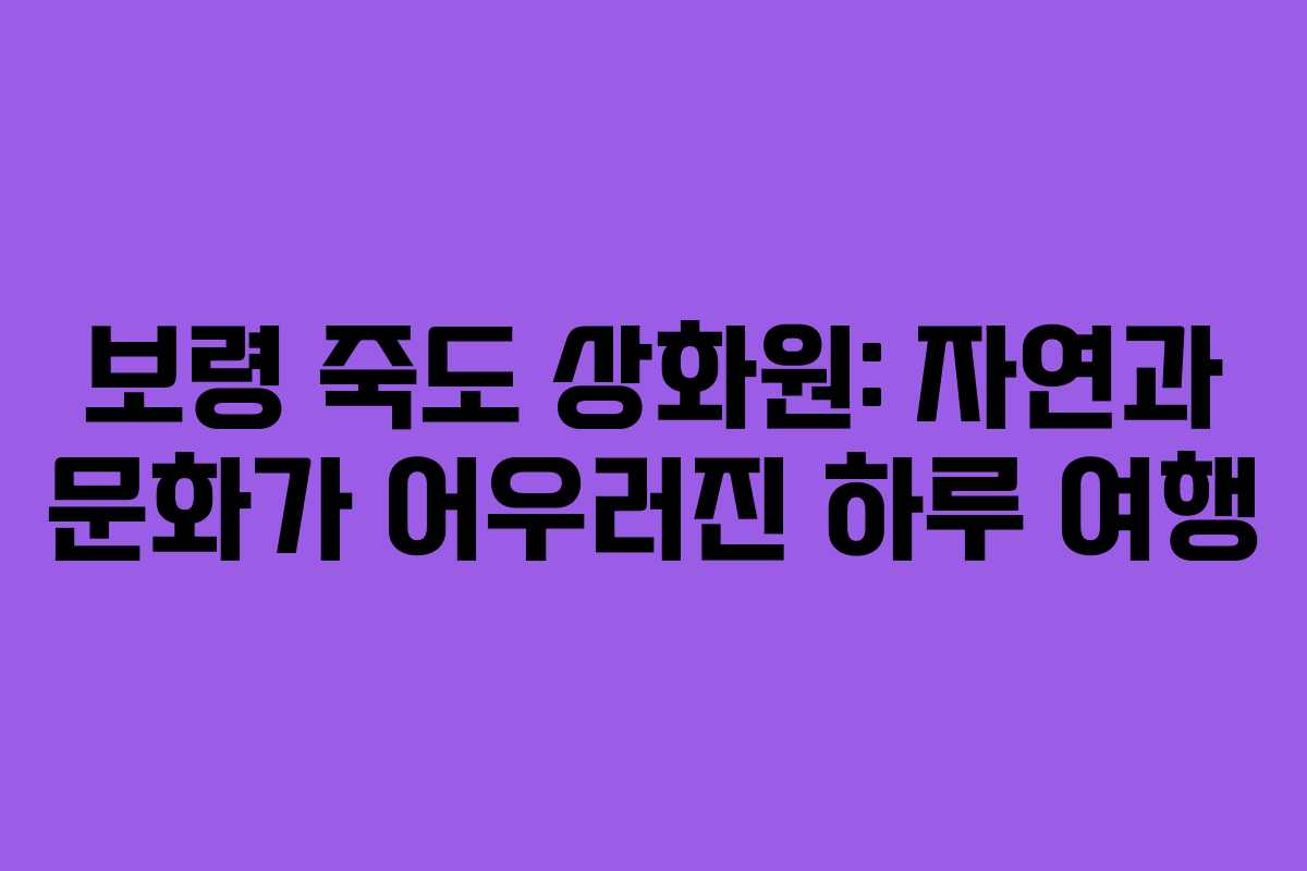 보령시 죽도에 위치한 상화원은 아름다운 자연과 독특한 문화 체험을 제공하는 곳입니다. 이곳은 하루 여행을 계획하기에 적합한 장소로, 친구의 추천으로 방문하게 되었습니다.