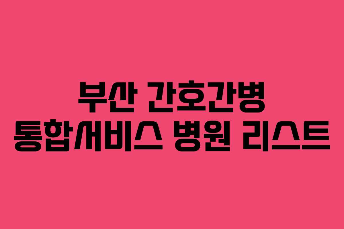 부산 간호간병 통합서비스 병원 리스트