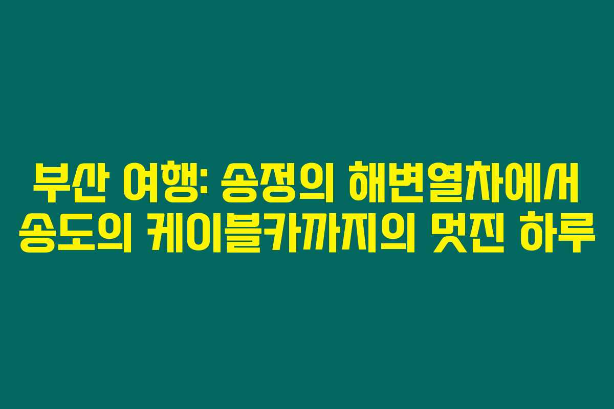 제가 직접 경험해본 결과로는, 부산 여행에서 송정 해변열차와 송도 케이블카는 잊을 수 없는 경험이었어요. 이 두 가지 활동은 각각의 특별한 매력을 지니고 있어, 부산을 방문하는 분들에게 강력하게 추천드립니다. 아래를 읽어보시면, 부산 여행의 즐거운 순간들을 공유하겠습니다.