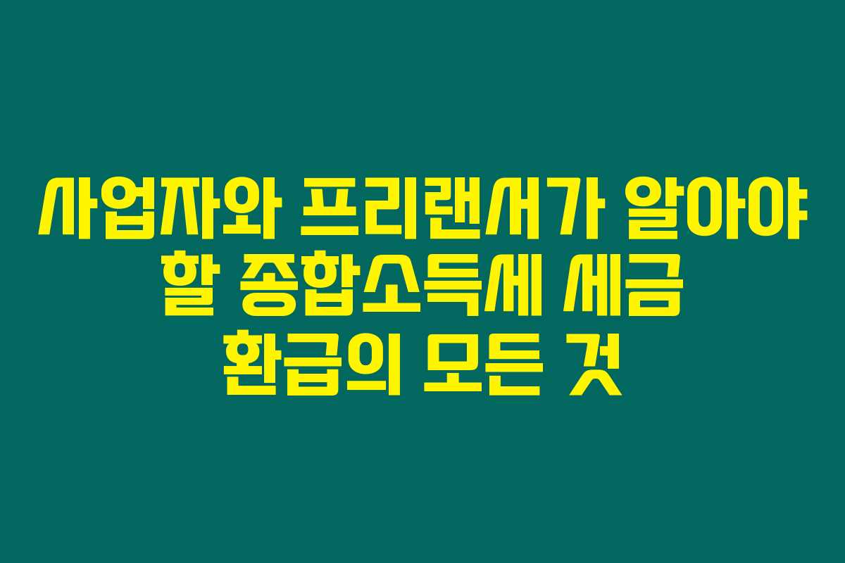 사업자와 프리랜서가 알아야 할 종합소득세 세금 환급의 모든 것