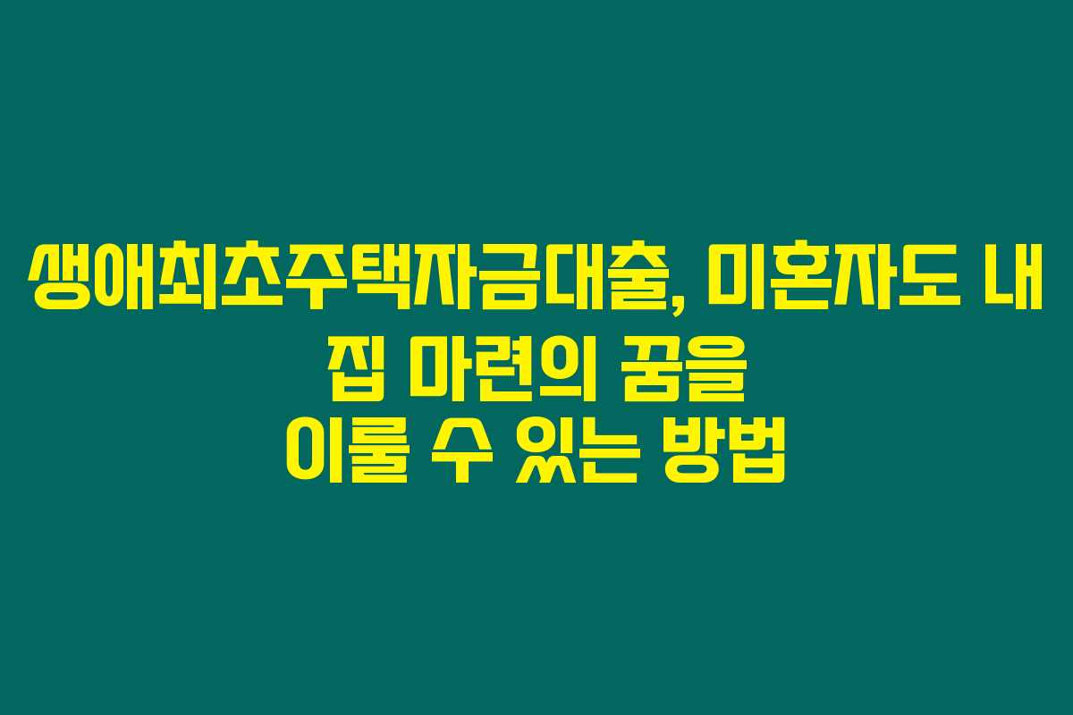 내 집 마련은최대한의 자금을 필요로 하기 때문에 대출을 고려하지 않으면 힘들 것 같죠? 이때, 정부에서 지원하는 생애최초주택자금대출은 미혼자에게도 큰 혜택을 제공합니다. 그래서 많은 사람들이 이 제도를 통해 주택 구매의 첫 발을 내딛고 있어요.
