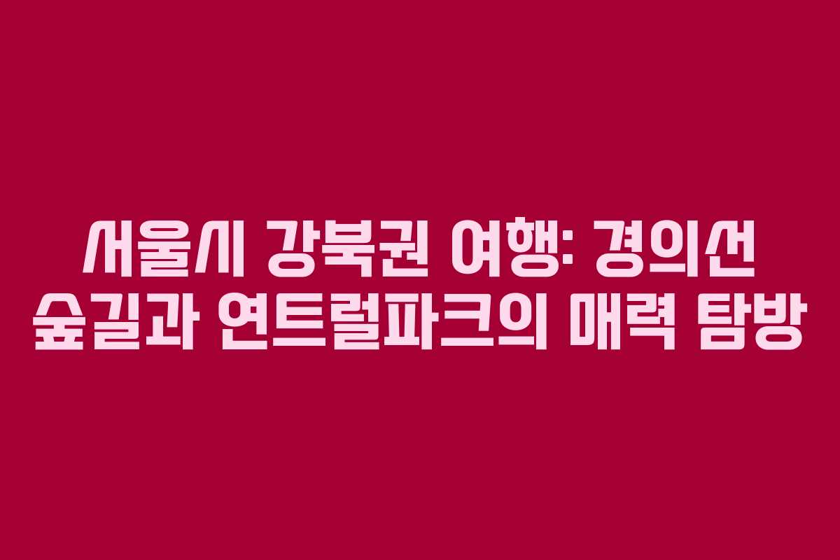 서울의 강북권에 위치한 경의선 숲길과 연트럴파크는 자연과 문화가 어우러진 특별한 공간이다. 이곳은 다양한 경험을 제공하며, 특히 저녁 시간대의 아름다운 풍경은 누구에게나 잊지 못할 추억을 선사한다. 서울을 방문하는 이들에게 강력히 추천하는 장소로, 소중한 사람들과 함께 기억에 남는 시간을 보내기 적합하다.